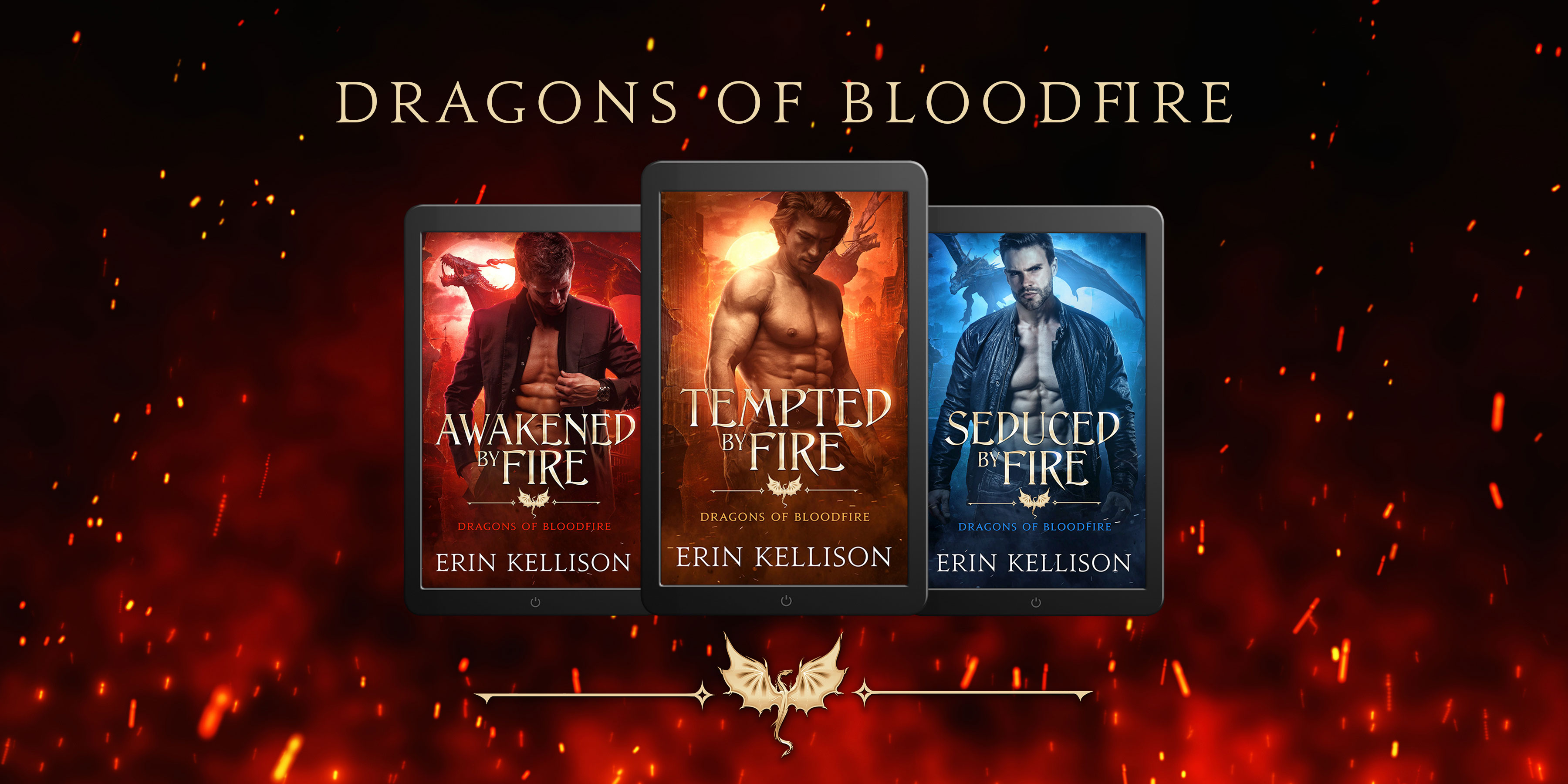 The Dragons of Bloodfire series by Erin Kellison includes three spicy stand-alone paranormal romances, set in a present day filled with humans, shifters, and other magical creatures. A Triad of Dragon shifters rule over them all, but they each remember a distant past where power was the currency of the world. And yet each of them would give up everything for the ones they love.